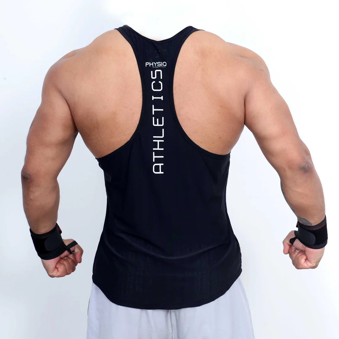 Elevate your gym game with our sleek alpha tank stringer for men! Crafted with premium, breathable fabric, these vests offer unmatched comfort and unrestricted mobility, ensuring you can conquer every workout with confidence. From Deadlifts to Pull-ups, our stylish designs keep you looking and feeling your best while withstanding the toughest training regimes. Ready to level up your gym attire? Order from Physiq Clothing Store and grab yours today!