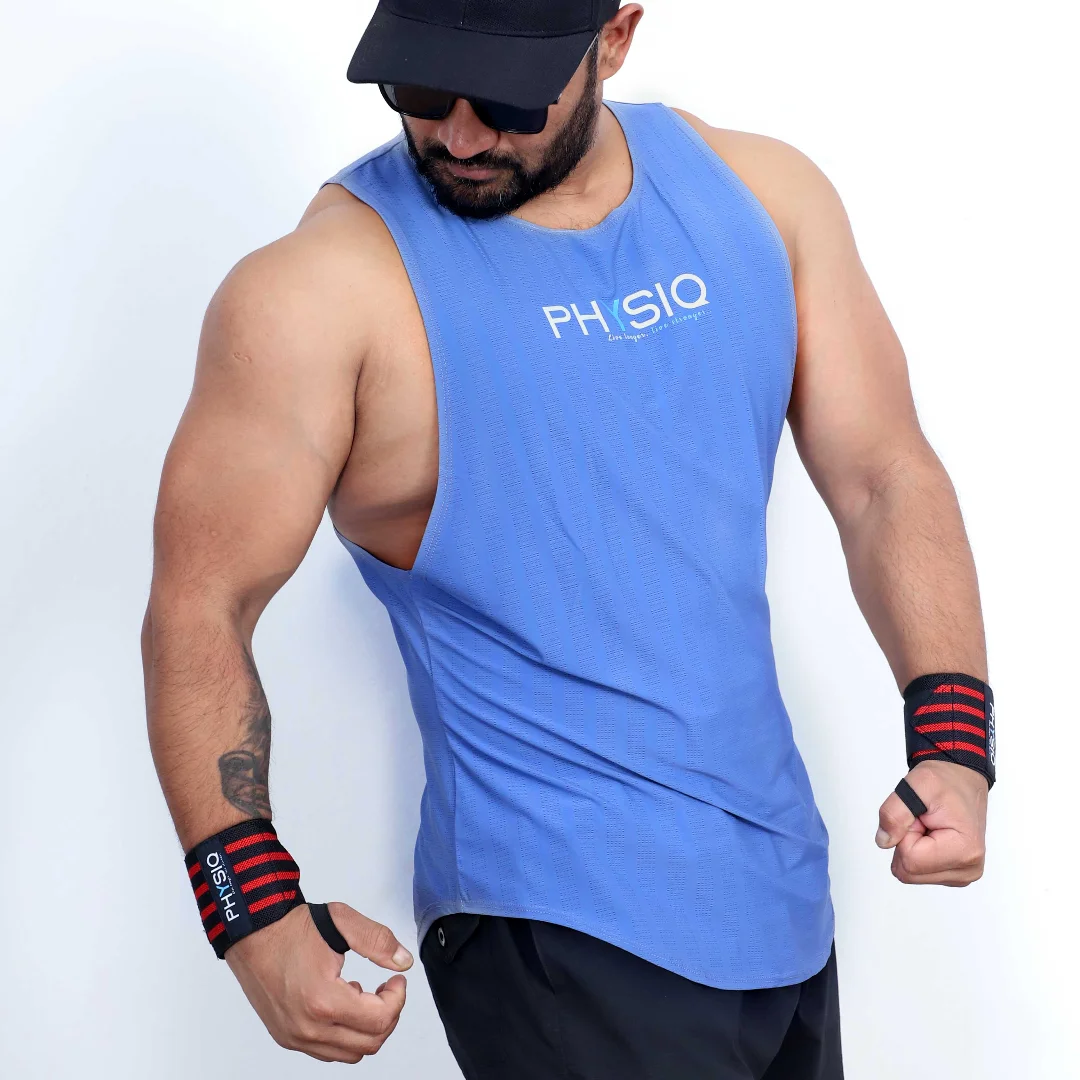 Elevate your gym game with our sleek sleeveless vests for men! Crafted with premium, breathable fabric, these vests offer unmatched comfort and unrestricted mobility, ensuring you can conquer every workout with confidence. From Deadlifts to Pull-ups, our stylish designs keep you looking and feeling your best while withstanding the toughest training regimes. Ready to level up your gym attire? Order from Physiq Clothing Store and grab yours today!